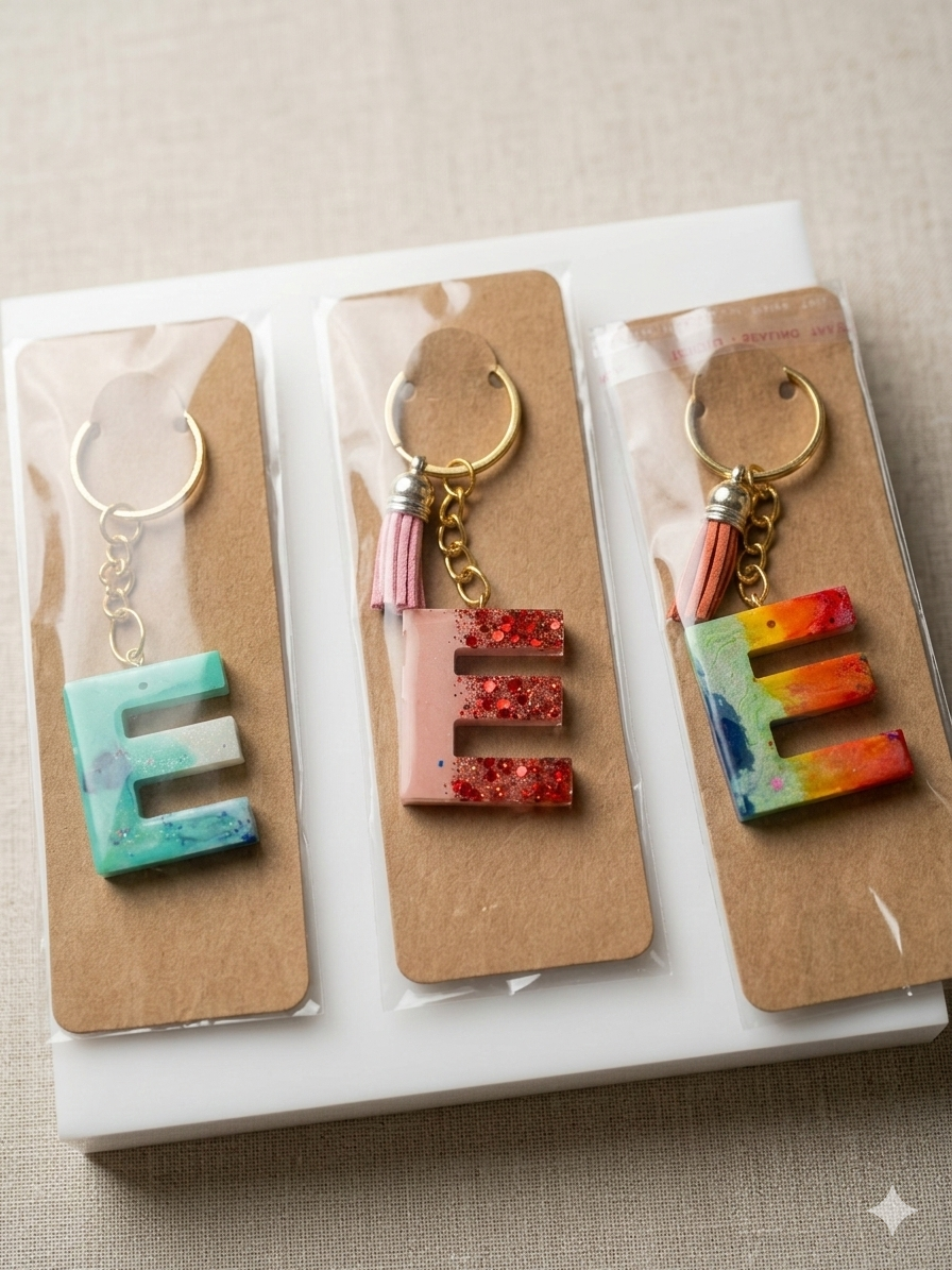 Personalize your everyday essentials with these vibrant, handcrafted resin initial keychains. Available in various designs, including sparkling red glitter and serene ocean-blue swirls, each piece is uniquely cast for a glass-like finish. The keychains are accented with stylish matching tassels and sturdy gold-tone hardware for a premium feel. Perfect as a thoughtful birthday gift, a party favor, or a chic accessory for your handbag. Carry a piece of custom art wherever you go.